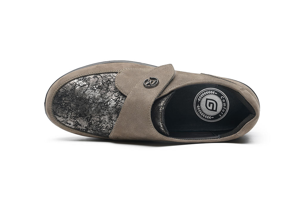 Conçues pour le confort au quotidien, ces chaussures pour femmes offrent un chaussant généreux, idéales pour les pieds qui ont besoin de plus d’espace. La bride à velcro permet un ajustement facile et précis, s’adaptant parfaitement à chaque morphologie. L’empeigne en cuir nubuck, combinée à un dessus en matière textile, apporte souplesse tout en réduisant la pression sur le pied. Chaque pas est plus naturel, sans sensation de contrainte. Un modèle qui allie élégance et confort durable.