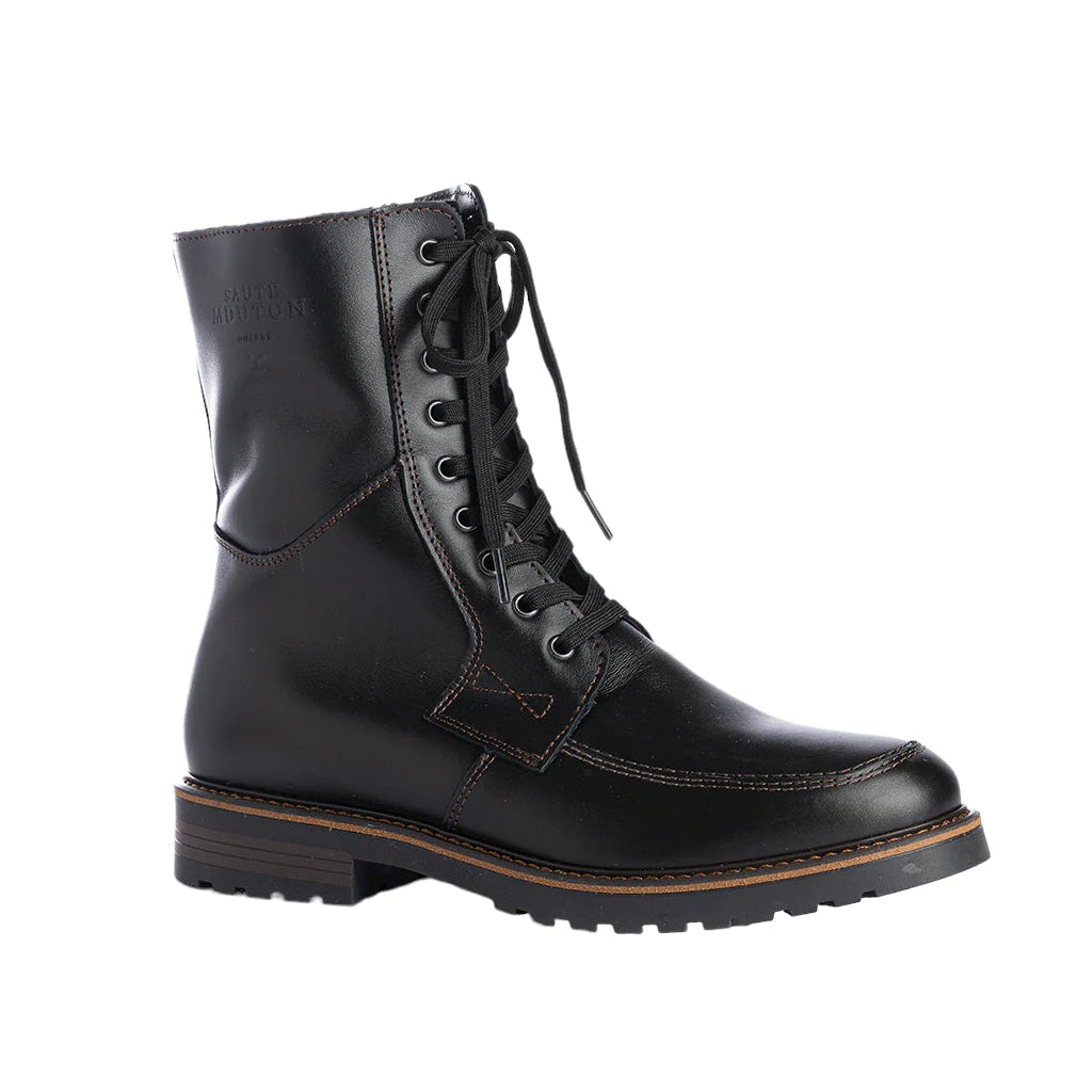 Notre botte HUBERT de Saute-Mouton est le coup de cœur de la collection. Elle sera parfaite pour garder vos pieds au chaud tout l'hiver, et ce, avec style. Sa fermeture éclair permet un enfilage facile, tandis que ses lacets lui confèrent un look classique et un ajustement précis. Entièrement fabriquées à la main au Québec, les bottes Saute-Mouton sont confectionnées avec les meilleurs matériaux disponibles. Bien que très polyvalentes, elles sont principalement conçues pour un usage urbain.