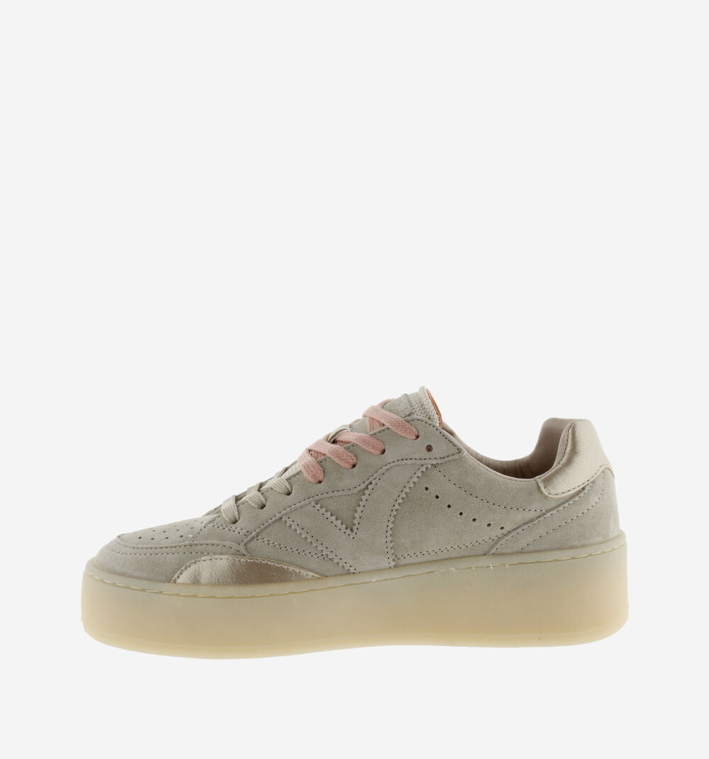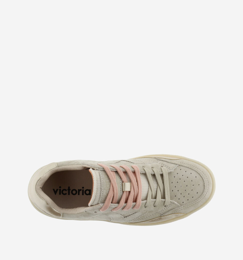 Les chaussures TURIN SERRAJE de VICTORIA incarnent la polyvalence urbaine que vous recherchez. Réalisées en daim orné d'accents métallisés assortis, elles se marient parfaitement avec vos tenues existantes. Personnalisez votre allure grâce aux deux paires de lacets incluses. Une chaussure versatile qui épouse votre quotidien avec élégance.