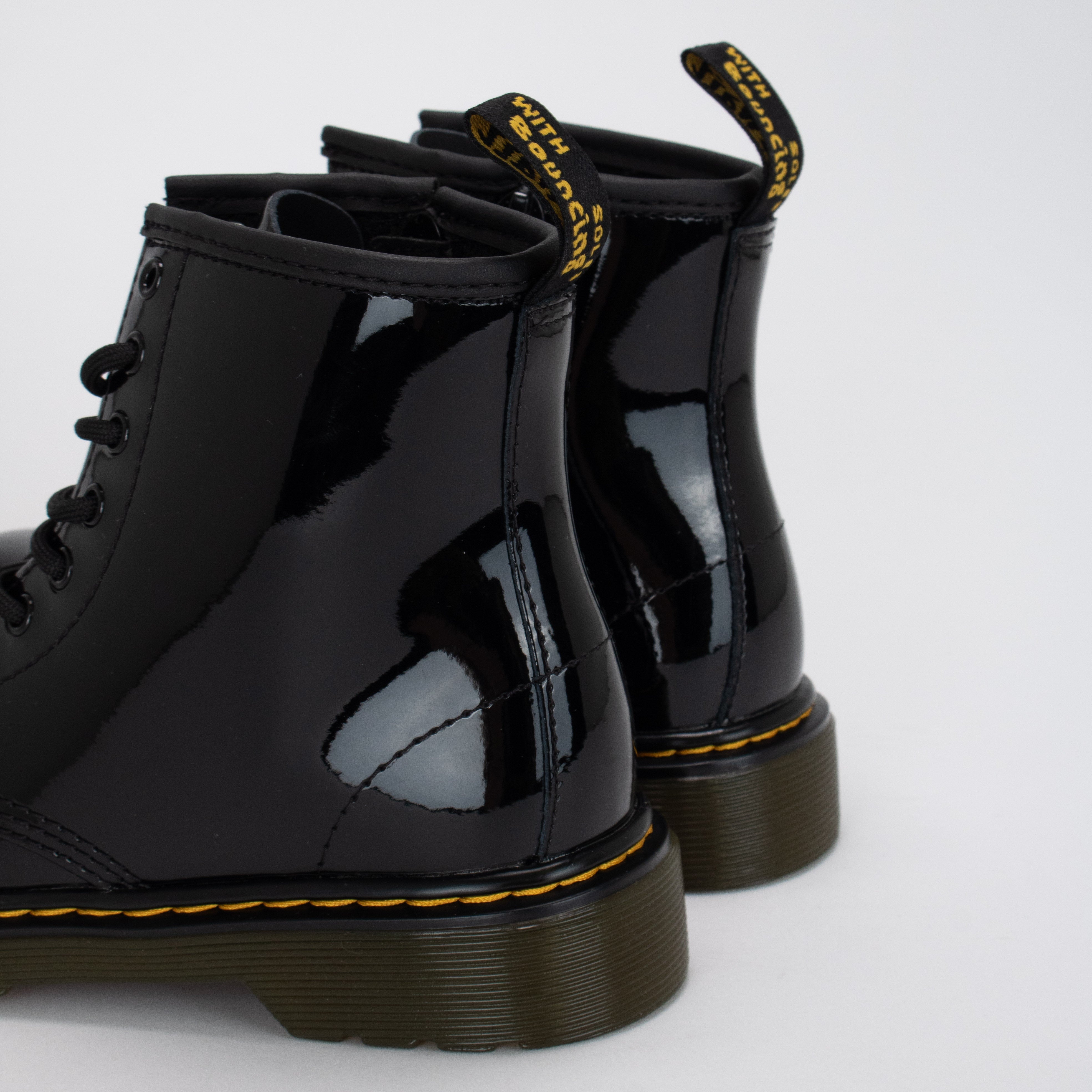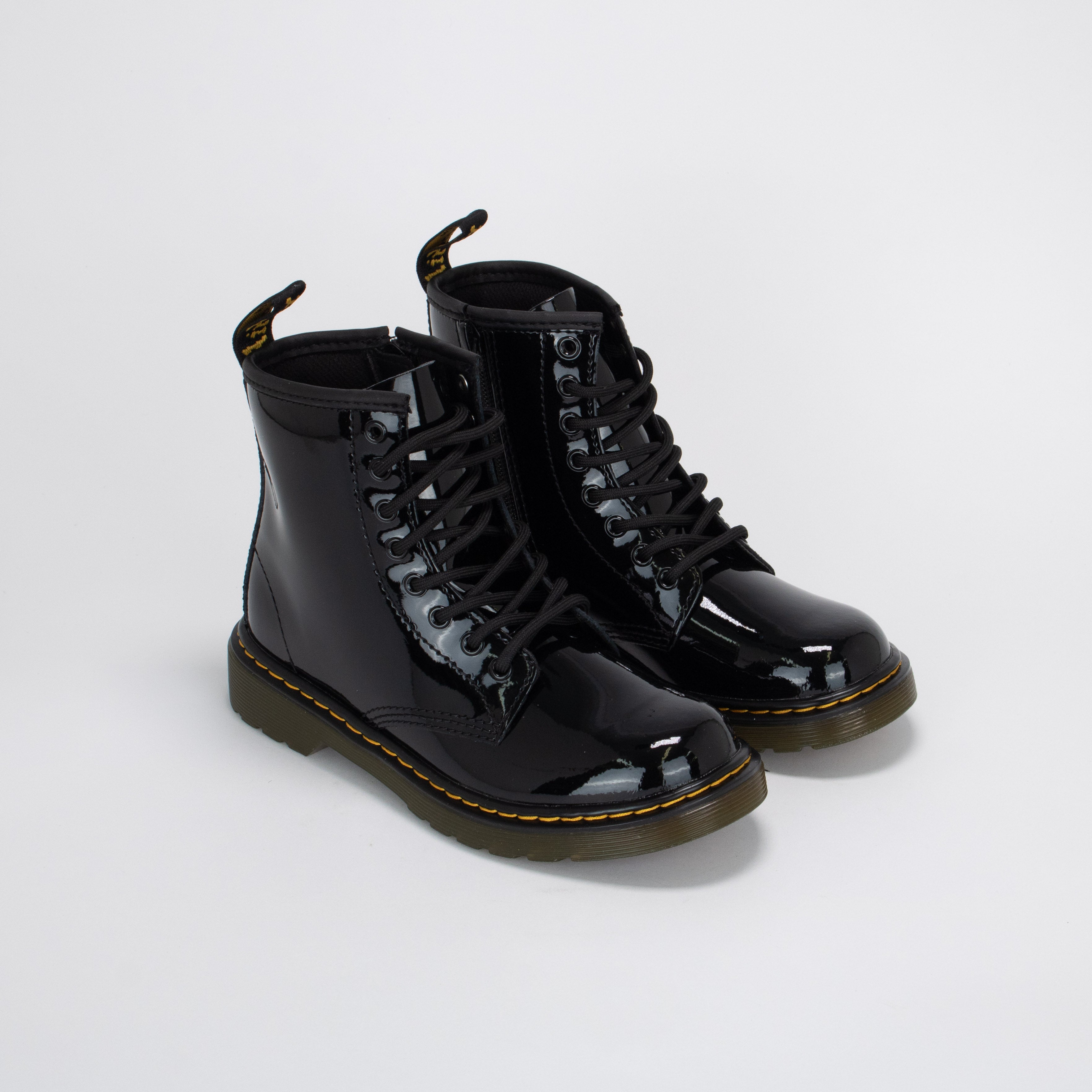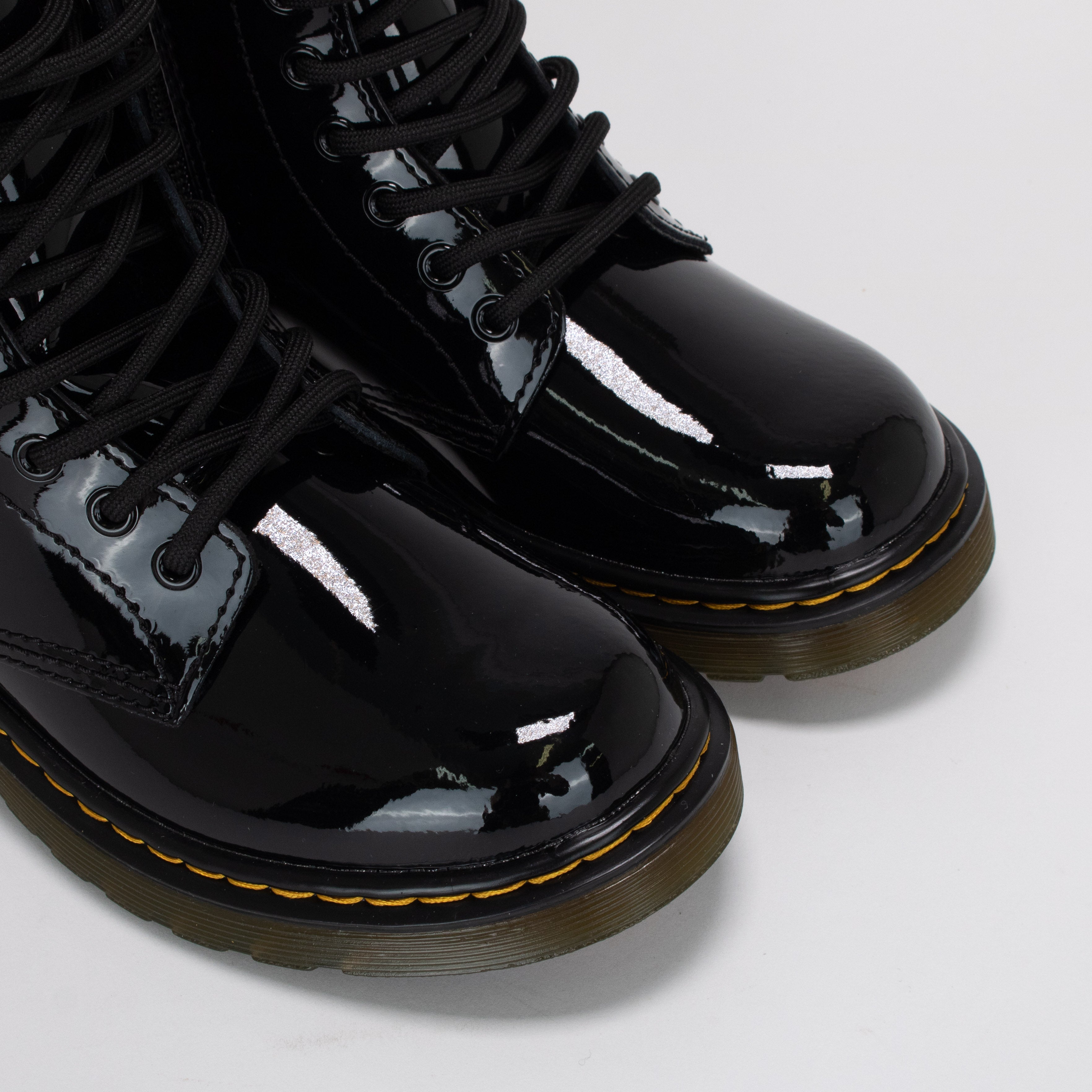 1460 PATENT pour petits et grands enfants : l’emblématique bottillon lacé à 8 œillets de Dr. Martens dans sa version vernie. Ce produit non isolé convient au temps doux ou à un port intérieur.