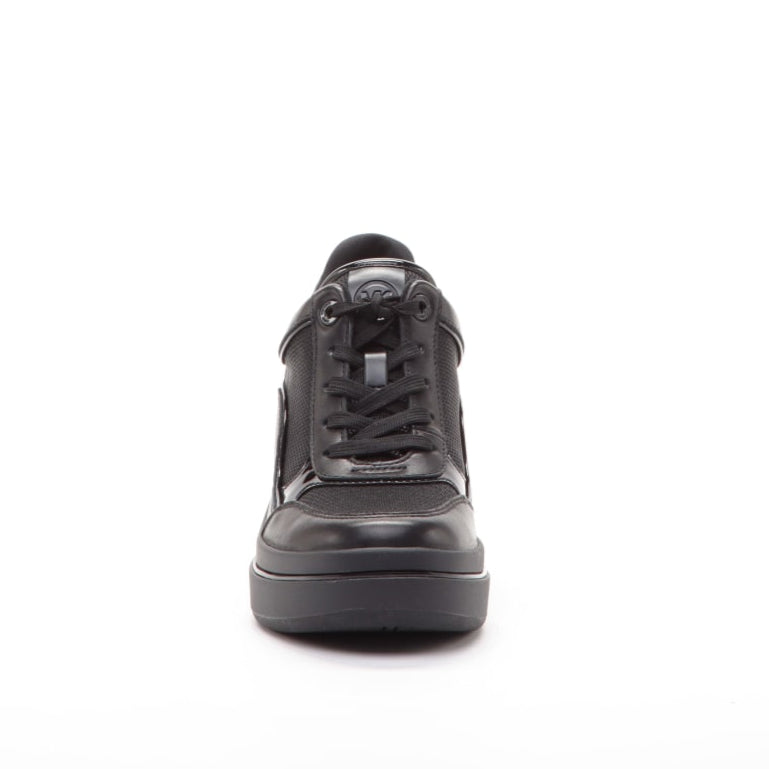 Rehaussez votre style de tous les jours avec l’espadrille compensée Emmy. Conçu en cuir lisse et verni avec des panneaux en maille respirante, ce modèle contemporain présente des lacets et une semelle compensée. La couleur noire monochrome garantit la polyvalence, en faisant le choix parfait à associer à un jean raccourci ou à votre robe mi-longue préférée pour un look chic sans effort.