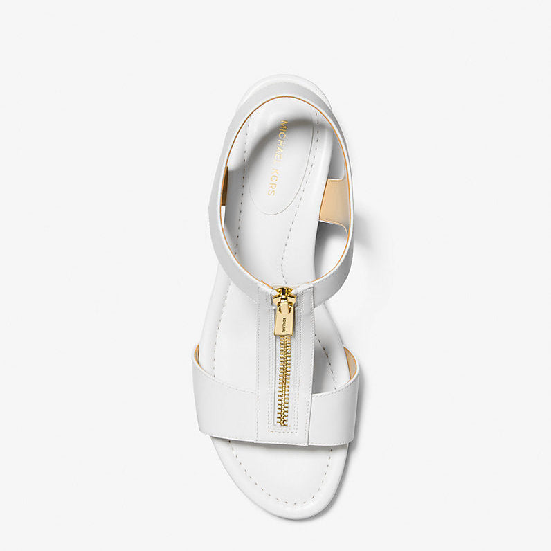La sandale BERKLEY WEDGE de la marque MICHAEL KORS offre un style pratique pour les journées chargées. Confectionnée en cuir véritable avec une fermeture éclair pratique et un talon compensé, elle allie confort et élégance. Portez-la avec tout, des jeans aux jupes mi-longues.