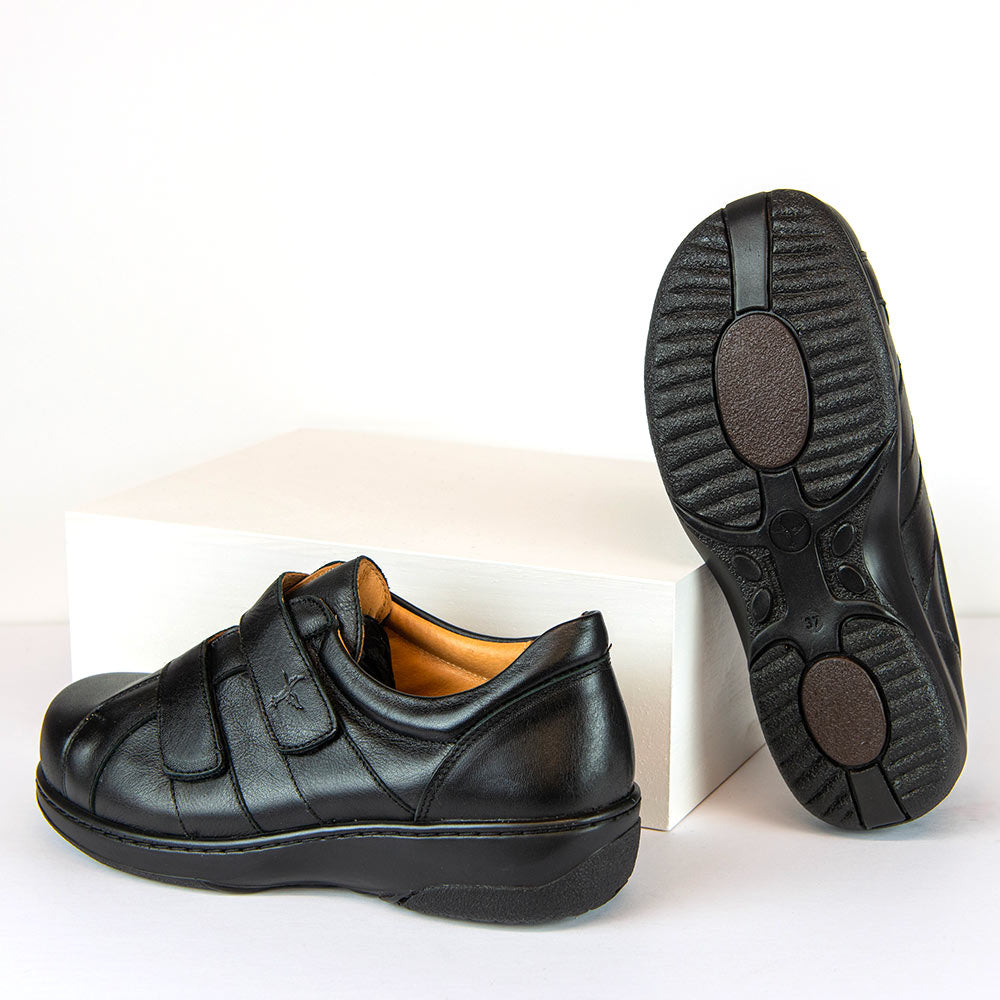 ND-11351, un modèle de chaussure de la marque Portofino, est conçu pour recevoir plusieurs types d’orthèses plantaires et assurer le confort des pieds sensibles grâce à ses matériaux extensibles.